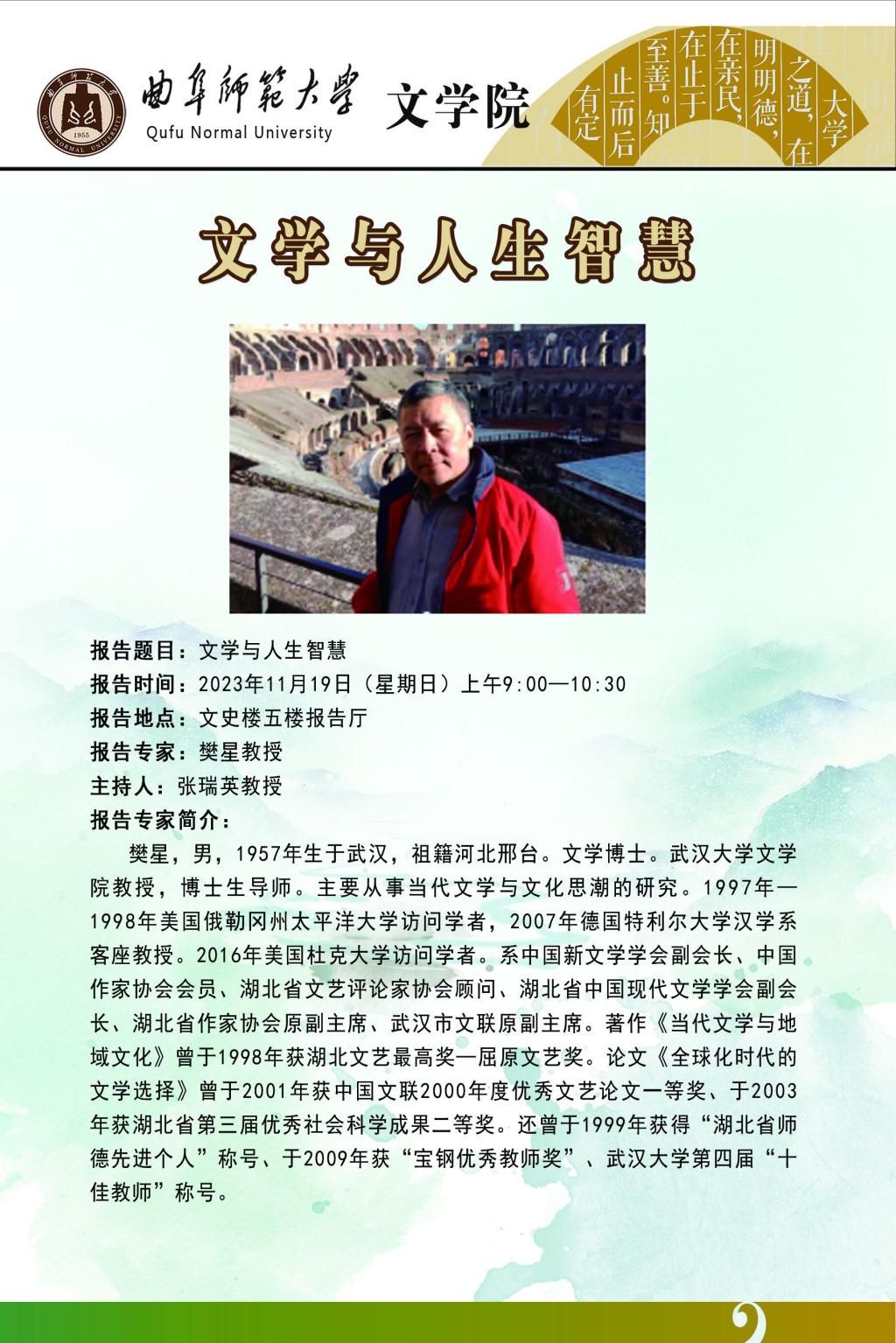 学术报告预告|樊星:文学与人生智慧