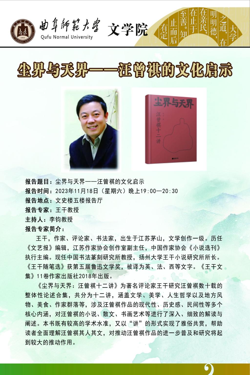 学术报告预告|王干:尘界与天界——汪曾祺的文化启示