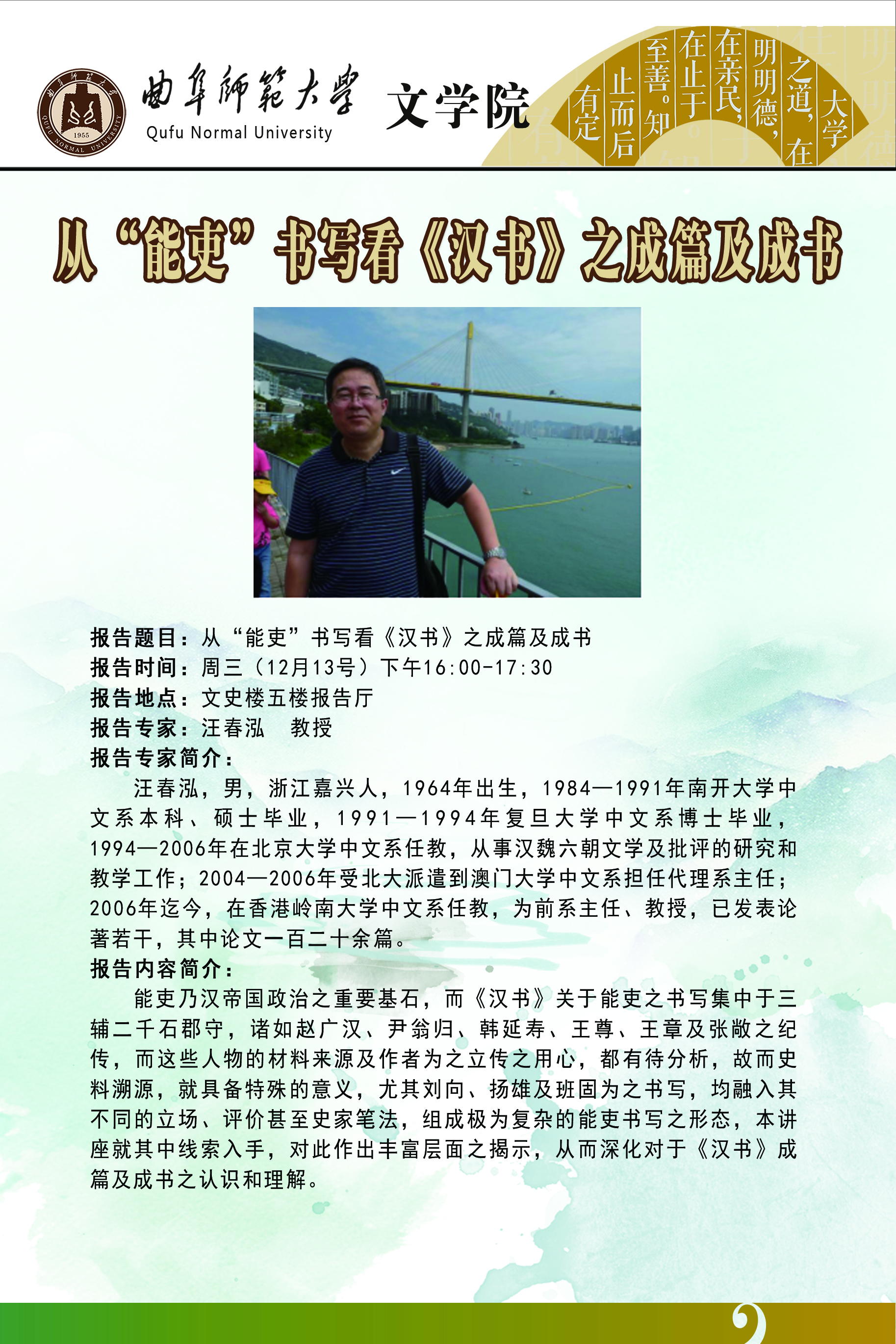 学术报告预告|汪春泓:从“能吏”书写看《汉书》之成篇及成书