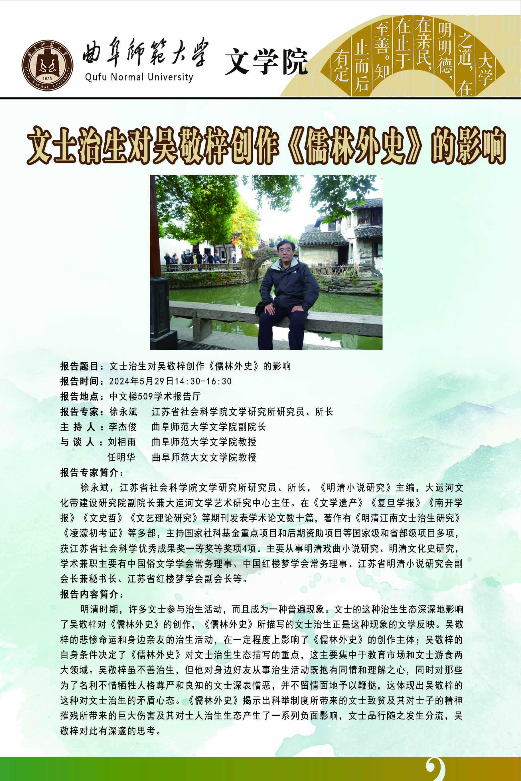 学术报告预告|文士治生对吴敬梓创作《儒林外史》的影响