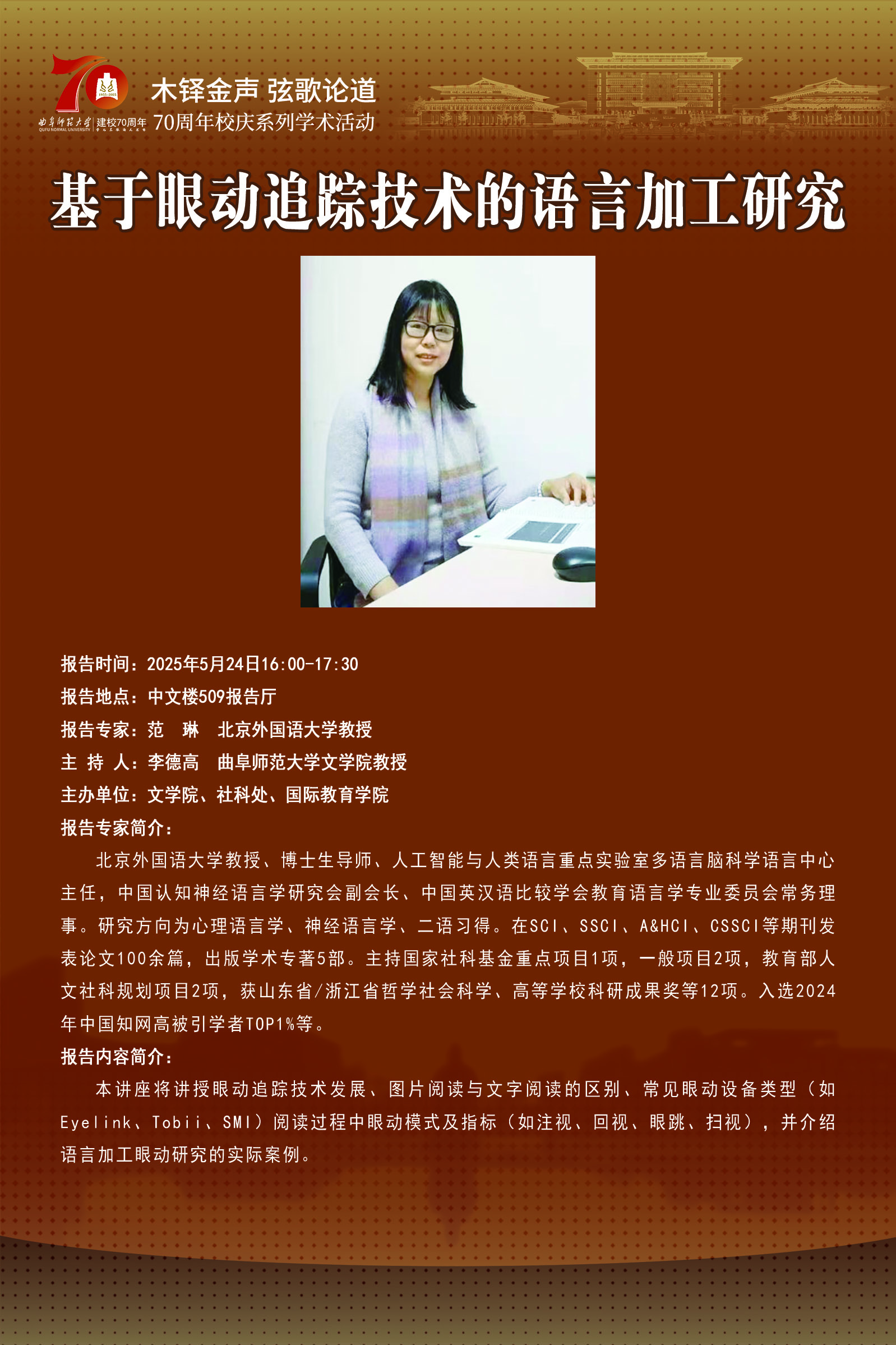70周年校庆系列学术报告|基于眼动追踪技术的语言加工研究