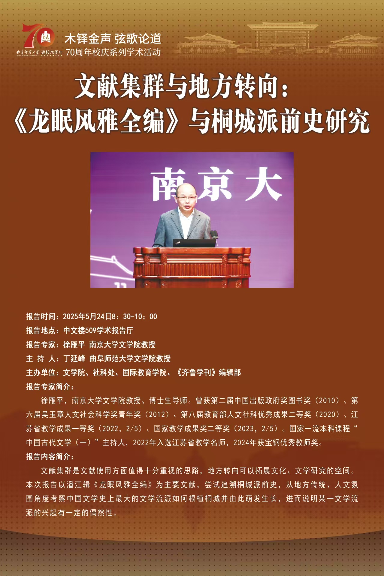 70周年校庆系列学术报告|文献集群与地方转向:《龙眠风雅全编》与桐城派前史研究