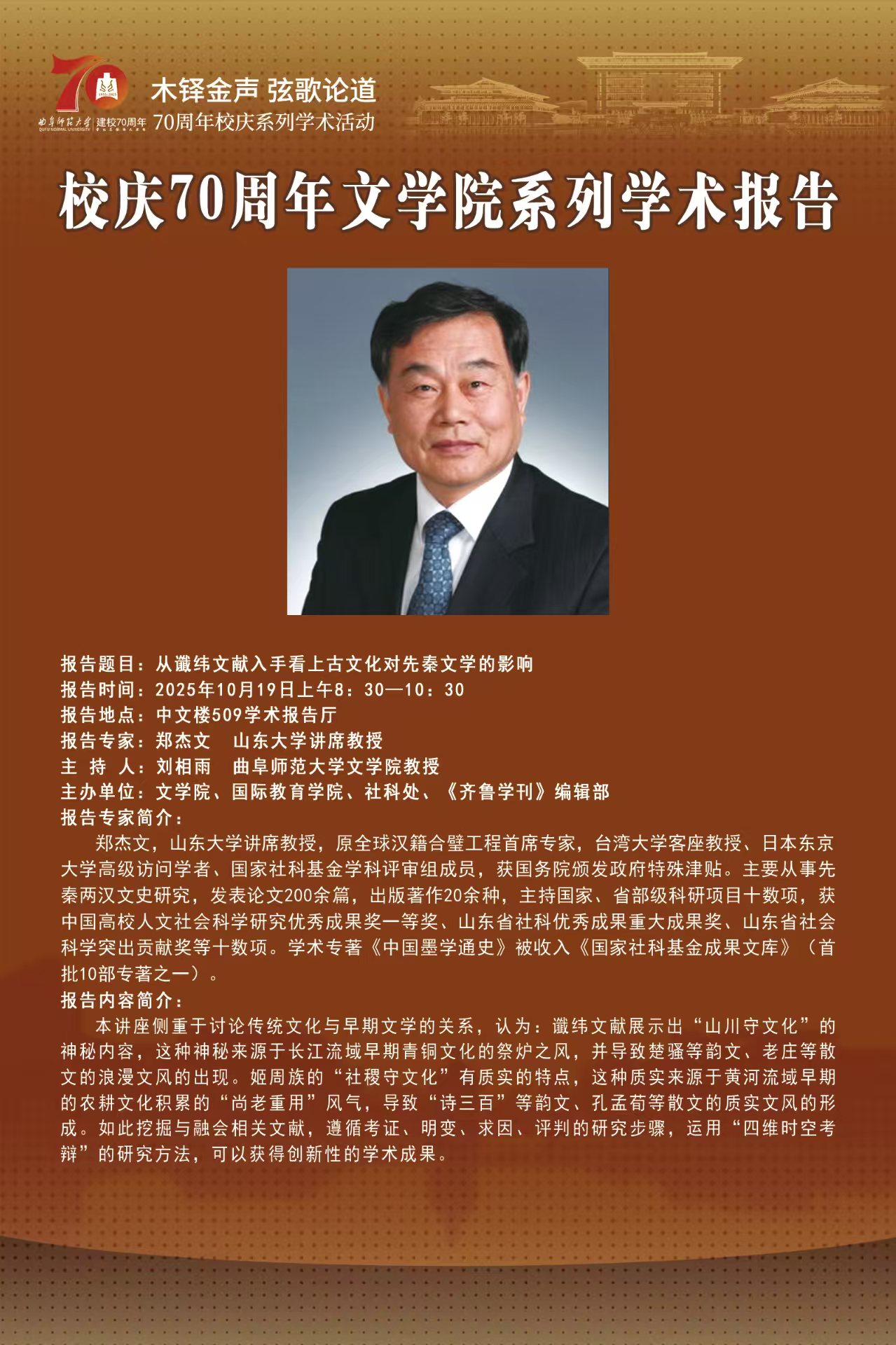 70周年校庆系列学术报告|从谶纬文献入手看上古文化对先秦文学的影响