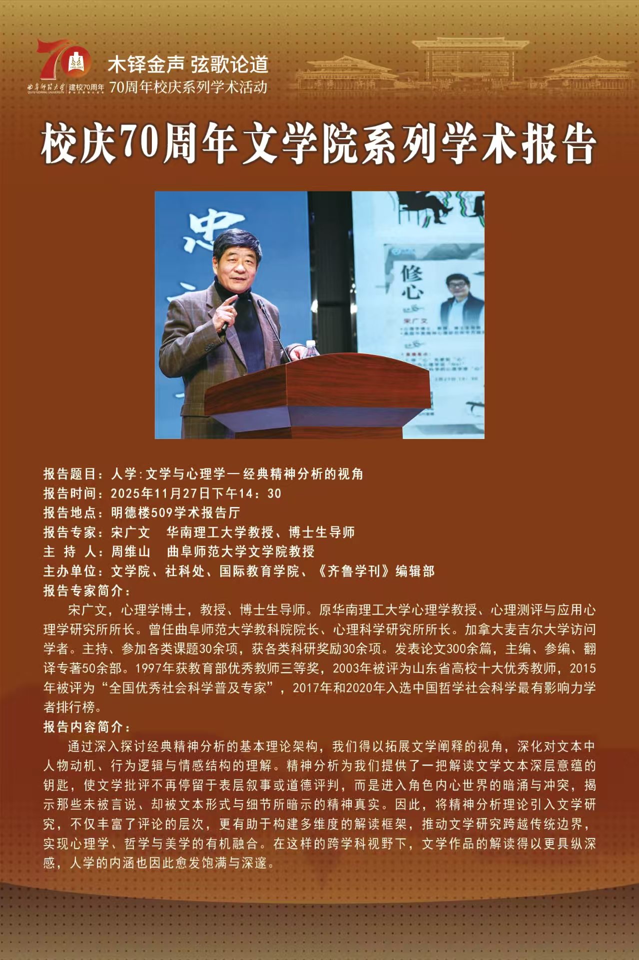 70周年校庆系列学术报告|人学:文学与心理学——经典精神分析的视角