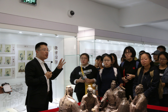 为全面贯彻落实《中共山东省高校工委关于建立高校领导干部联系学生班级制度的意见》精神和《曲阜师范大学处级干部联系学生班级制度》(曲师大党办字[2013]6号)的要求,进一步加强和改进大学生思想政治教育,提升高校党建和思想政治工作科学化水平。10月21日下午,蜘蛛直播 党委书记李金雷、中国教师博物馆副馆长孙祥广与所联系的蜘蛛直播 2018级、2019级师范生共同参观中国教师博物馆并为大家作“钩沉教师历史,涵养师德教育”主题教育讲解。