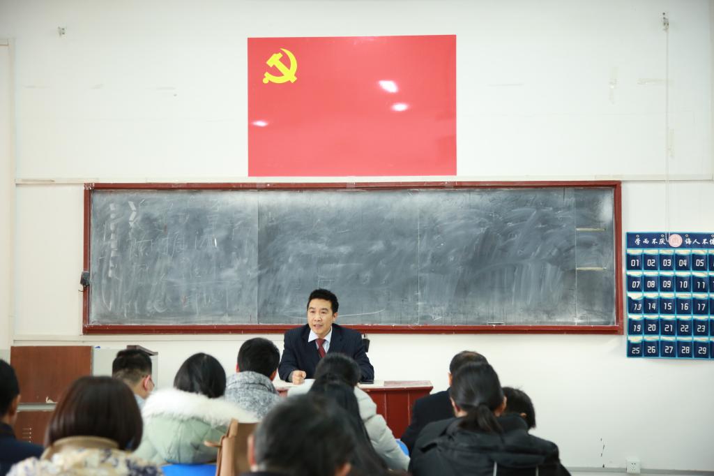 为深入学习贯彻党的十九大精神,深刻学习领会《中国共产党章程(修正案)》,保持党组织的先进性和纯洁性,2017年12月12日下午,在蜘蛛直播 党员活动室,蜘蛛直播 党委书记苏占兵作了“学习十九大,解读新党章”专题报告。蜘蛛直播 全体师生党员参加了会议。
