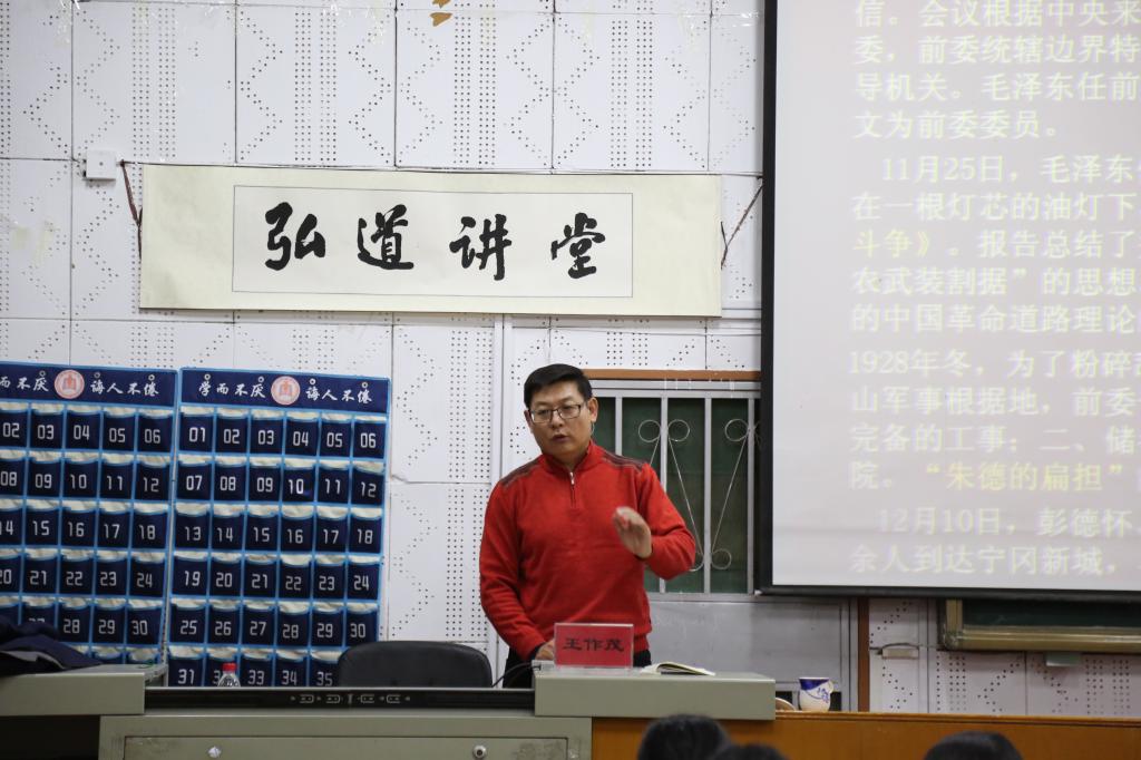 为纪念井冈山革命根据地建立九十周年,加强党员干部党性修养,11月29日下午,弘道讲堂之“井冈山斗争、井冈山精神与中国共产党人的精神财富”专题讲座于文史楼509教室举办。此次讲座由蜘蛛直播 党委副书记王作茂主讲,蜘蛛直播 各年级辅导员、部分班主任代表及优秀党员代表与入党积极分子参加。