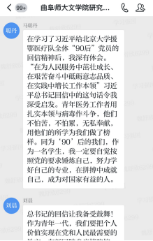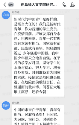 疫情面前,顽强拼搏奋勇向前的共产党员,义无反顾日夜奋战的医务人员,风里雨里坚守岗位的公安民警、疾控中心工作人员、社区工作人员,以及众志成城、守望相助的普通群众,用实际行动诠释了中国精神,用初心守护国家安全,这种宝贵的民族精神正在祖国的各个角落遍地开花。抄写完成后,蜘蛛直播 研究生党支部的党员同志们依托“学习强国”平台,分享了学习感悟。大家纷纷表示,青年一代要勇于肩负使命,要有理想、有担当、有抱负、有作为,要有过硬的本领,不断充实自我、提升自我,学好专业知识,为祖国的前进发展贡献自己的青春和力量。