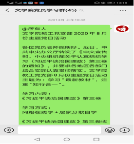 按照蜘蛛直播 党委工作安排,为认真贯彻落实《中央宣传部、中央组织部关于认真组织学习〈习近平谈治国理政〉第三卷的通知》,蜘蛛直播 教工党支部于8月14日召开“学习‘最新教材’,注重‘知行合一’”的主题党日活动。