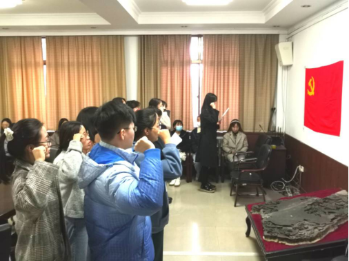 会议第一项,召开蜘蛛直播 本科生党员纳新大会。在党支部书记刘伟的主持下,十四名党员发展对象依次宣读入党志愿书,经支部书记刘伟介绍综合政审情况,入党介绍人、与会党员充分发表意见后,大会通过无记名投票对十四名党员发展对象进行了表决,同意十四名党员发展对象入党。随后由党员崔芳博同志领誓,十四位中共预备党员一同面向党旗庄严宣誓。