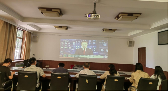 与会同志通过观看新闻联播相关视频内容共同学习了习近平总书记的讲话精神。