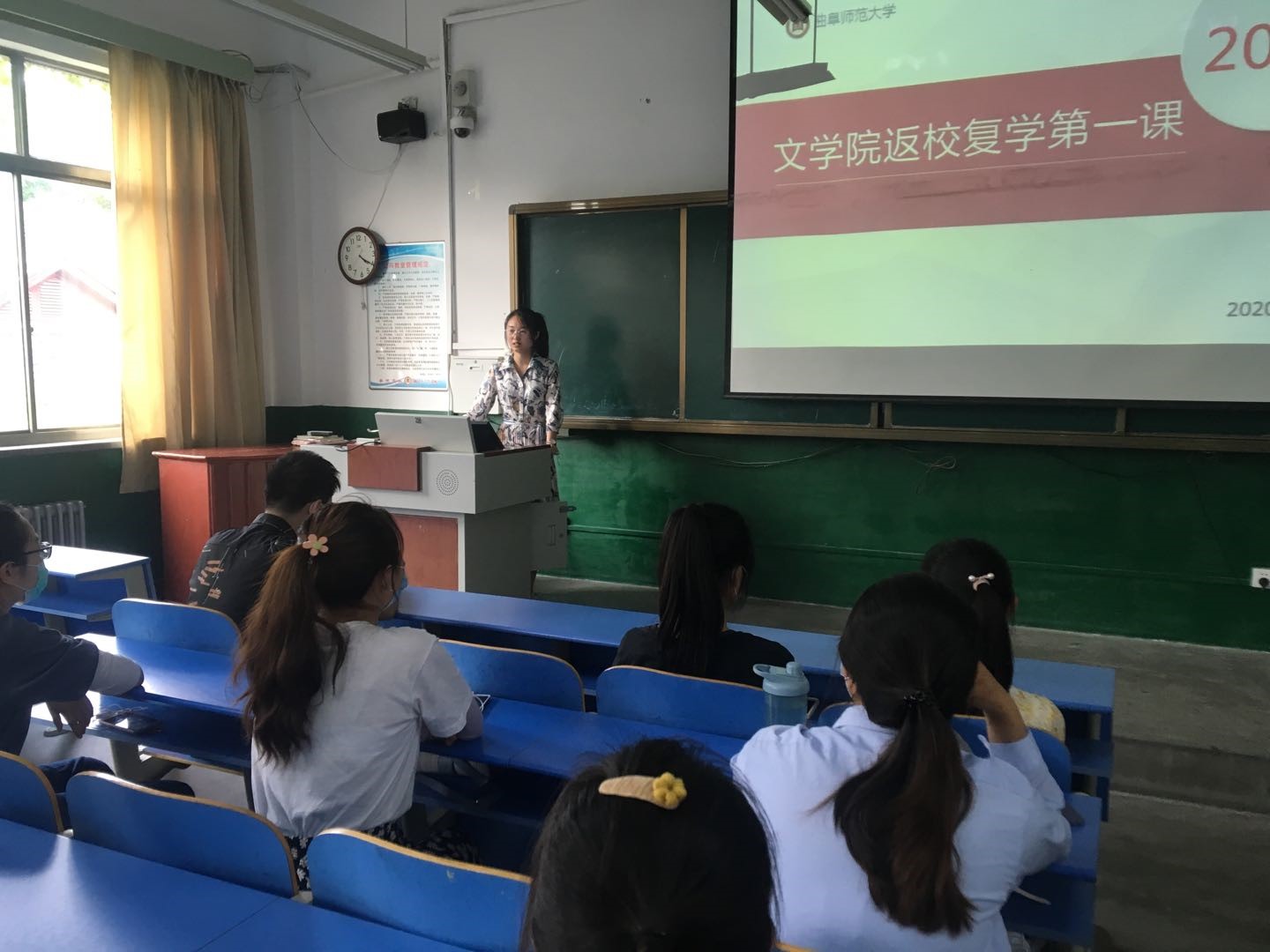 曲媛媛老师首先对返校学习的13位同学表示欢迎,希望各位同学严格遵守学校疫情防控的各项要求,本着为自己的安全,为他人、为社会负责的态度,理解各种要求带来的不便。同时,在做好疫情防护的前提下,照顾好学业,适当锻炼,增强体质。