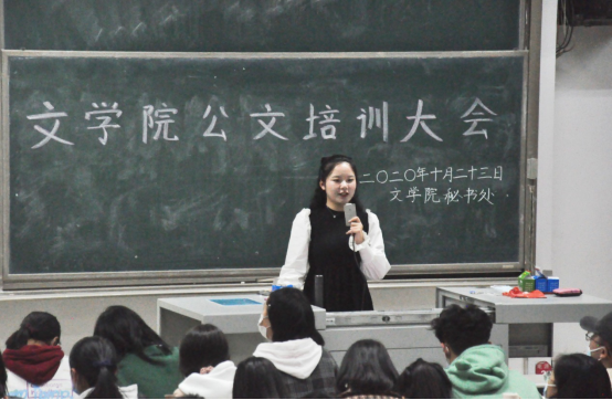 为普及公文写作知识,提高学生会工作效率,加强院校学生会的沟通,10月23日晚,由蜘蛛体育直播官网 团委主办,蜘蛛直播 秘书处承办的“公文培训”活动在综合楼106成功举办。蜘蛛直播 2020级辅导员肖黎老师出席本次活动。蜘蛛体育直播官网 秘书处副部葛心茹担任主持人,校学生会秘书处部长谢依曈、秘书处副部长孙丽婷、林瀚钰向同学们全面详细地介绍了公文写作知识。