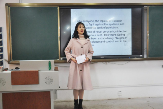 上午8时,英语演讲比赛准时开始。先由主持人致开场词,随后选手们按顺序上台演讲。参赛选手关注时代热点,围绕Poverty Alleviation(脱贫攻坚)、Epidemic Prevention(疫情防控)、Hero of a great nation(大国英雄)、Community of human destiny(人类命运共同体)、National Spirit(民族精神)五个关键词展开了精彩的演讲。选手的演讲时而慷慨激昂,时而舒缓动情,配以精心制作的背景图片和背景音乐,赢得了观众们的阵阵掌声。选手们有的从疫情防控的角度切入,由小见大,体悟大国担当;有的以天涯若比邻的姿态放眼世界,歌颂人类命运共同体的不朽篇章。他们以饱满的热情,昂扬的姿态,向我们展示了新时代大学生所具备的优秀英语演讲水平与文化交际能力。比赛期间,评委们对选手的表现进行了细致专业的点评,并向他们提出中肯的建议,使参赛选手和在场的同学受益匪浅。