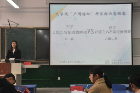 11月8日上午8点,由蜘蛛直播 团委主办、蜘蛛直播 学生会学习部承办的“广闻博辩”精英辩论赛预赛在文史楼315、320、324、414教室成功举办。本次辩论赛预赛邀请到了18、19级优秀辩手和20级各班负责人代表担任评委,他们本着公平、公正的原则对选手们的表现进行评判。同时场内观众热情似火,给予选手莫大的支持。