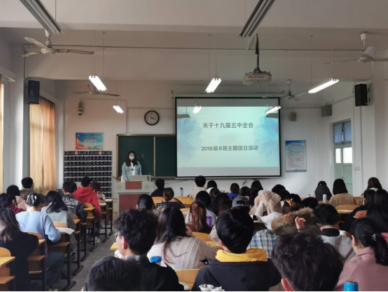 主题团日活动形式多样,内容丰富,同学们积极学习,认真思考十九届五中全会精神和习近平总书记重要讲话精神内涵。同学们纷纷表示,要落实党的十九届五中全会精神内涵,科学把握重要战略机遇期的新内涵,认真贯彻新发展理念,以党的十九届五中全会确定的各项目标任务为奋斗坐标,奋勇前进,在接续奋斗中为夺取全面建设社会主义现代化国家的新胜利做出应有贡献。