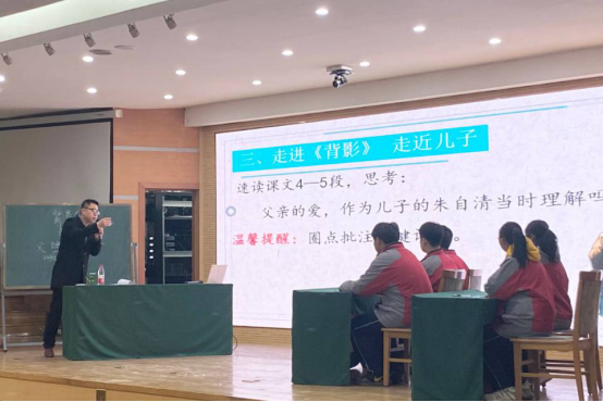 首场培训,曲阜市优秀教师、实验学校许成老师受邀讲授朱自清的《背影》一文,为同学们带来一堂精彩绝伦的示范课。在授课过程中,许老师以饱满的热情,娴熟的教学技法,通过对课文的分析讲解阐述了课文的深刻主题。授课结束后,许老师进行教学经验分享,并针对同学们的问题作出详细解答。许老师指出“如何围绕教学中心进行教学设计”是教学中的重要问题,提出“教学是用教材教而非教教材”的真知灼见,帮助同学们正确理解教材在教学过程中的作用。最后,许老师点明,语文教学的重要目的是让人变得更加美好。同学们沉浸其中,收获颇多。
