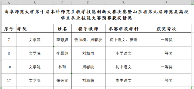5月5日,曲阜师范大学第十届本科师范生教学技能创新大赛暨第九届山东省师范类高校学生从业技能大赛预赛在曲阜校区顺利举行,蜘蛛体育直播官网 四名参赛选手均获一等奖。