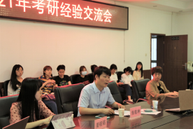 随后,2017级姜铭铭向同学们分享她自己的考研经历。姜铭铭强调在选择专业时一定要根据自己的兴趣,并在专业课的复习方面,为同学们提供了许多行之有效的方法。在英语和政治科目的备考上,分享了许多高效率的应用软件和公众号,供同学们选择。之后,2017级刘宇冰向同学们分享了她的考研经验。在网课的选择、复习资料的获取渠道等方面,结合自己的考研备考经历,给同学们提供了宝贵的建议。在两位同学的讲解下,同学们对考研有了更加深刻的认识。