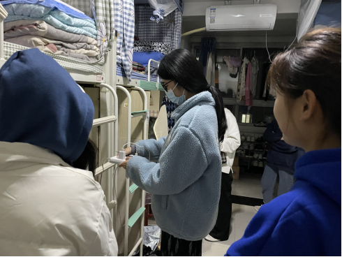 此次检查采用不发通知、直插现场的工作方式对校内宿舍区、裕盛苑、北公寓西区学生宿舍进行全覆盖式排查。过程中主要排查安全隐患,是否违规使用大功率电器、是否乱扯电线、是否留存易燃易爆等危险物品。各辅导员与所带年级学生深入交谈,进行安全教育,叮嘱学生务必加强安全防范意识,特别是增强安全用电意识,自觉遵守学校规章制度,严防火灾和人身意外伤害事故的发生,增强自护自救能力,在心中筑牢“防护网”,绷紧“安全弦”。