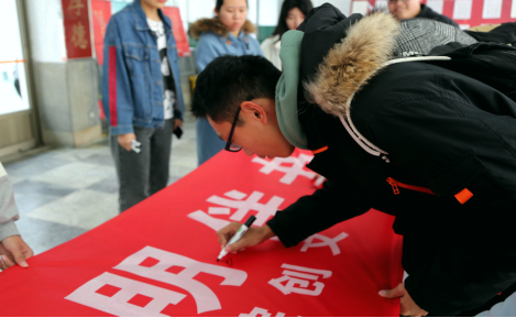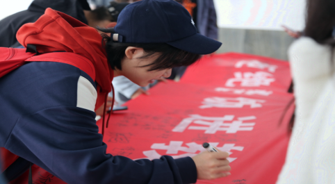 活动伊始,蜘蛛直播 各年级学生代表以班级为单位在文史楼前集合参加签字活动。学生代表在条幅上签字,展示出蜘蛛直播 学子对拒绝餐饭入教室的支持,与创建文明教室的信心与决心。文明教室始于当下,习惯养成久久为功,条幅上的每个名字都承载着蜘蛛直播 学子对创建文明教室的坚定信念和美好期盼。