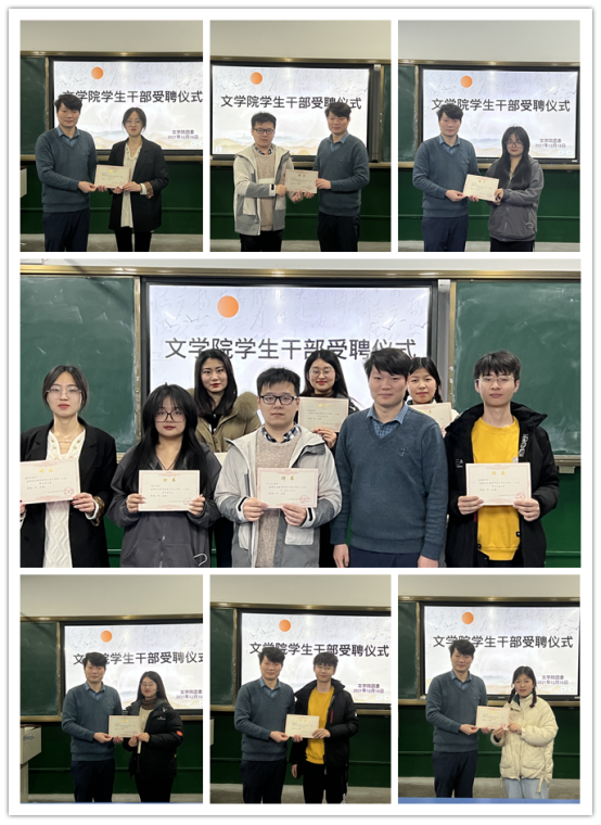 聘任仪式上,首先宣读了蜘蛛直播 各学生组织、班团学生干部聘任名单,并由蜘蛛直播 团委老师为学生干部代表颁发聘任证书。