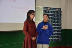 在充分的赛前准备后,各组选手精神饱满,跃跃欲试。化妆师运用自己的专业知识,对模特的妆容和服饰进行了细致条理的解说,充分展示了化妆师的知识素养。在模拟面试的过程中,各位模特大方得体,沉稳自如,面对评委的问题,她们随机应变,巧妙灵活,把职业素养体现得淋漓尽致。模拟律师的模特以一身西装和简单的妆容体现了律师的干练。模拟小学教师的模特妆容清新淡雅,一袭枣红色连衣长裙,充分展现了作为一名老师的气质和姿态。