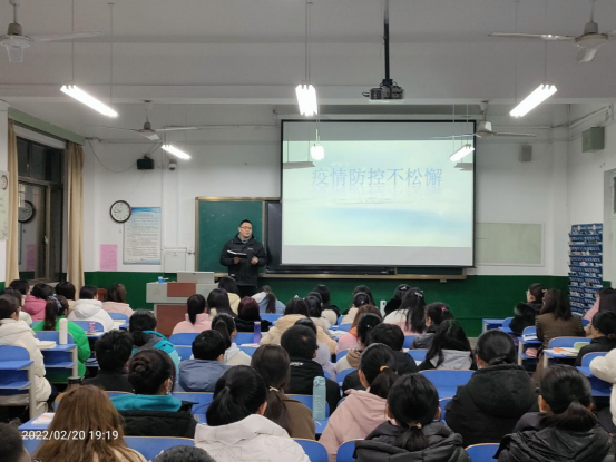 会议伊始,杨景添老师介绍了当前的疫情形势,他强调疫情无小事,防控疫情不能松懈,同学们应坚持每日健康打卡,做到自觉参与疫情防控。同时杨景添老师对同学的交通、日常生活、学生活动的安全提出了明确的要求,安全警钟需长鸣!会议上,高原老师提出新学期仍然要贯彻手机入袋、“四零”课堂等要求,做好2021级学风建设工作。新学期,新气象,她希望同学们以饱满的热情投入到学习生活中去,从冬奥精神和女足精神中汲取力量,厚积薄发、战胜自我,展现青年学子良好精神面貌,做勇担大任时代新人。