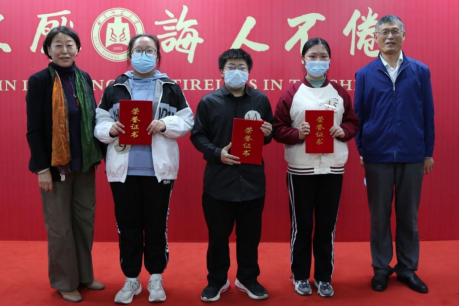 经过三个环节的激烈角逐,徐小宁、马思琪、王俊中三名参赛选手脱颖而出,分别荣获本次比赛的冠军、亚军和季军。周维山、徐雪辉两位老师为其颁发荣誉证书,并合影留念。