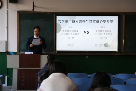 在首场比赛中,辩论双方围绕“美颜技术的普及对社会审美是否是好事”展开辩论。正方一辩开宗明义,明确指出了美颜技术对个体心灵、精神的积极作用,言辞犀利,定义精准;反方一辩不甘示弱,将美颜技术滥用的弊端详细陈述,有条不紊。在驳论及对辩环节中,正方二辩重申了己方的判准,并对反方提出的“美颜技术会挤占自然美的生存空间”展开反驳;反方二辩抓住了对方辩手言语上的漏洞,从“社会审美”这一方面展开驳论。在结辩环节中,反方四辩对先前己方的论证进行了归纳总结,同时质询对方辩手观点;正方四辩逐个反击了对方的质询,并就己方观点对论题进行了升华。双方辩手你来我往,竞争激烈,在辩论赛场上擦出激烈的火花。