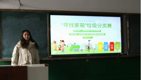 活动前期,社团管理部成员通过QQ公众号、蜘蛛直播 班级群等平台进行线上宣传,建立活动QQ群,在群内发布活动通知及活动具体要求,鼓励同学们积极参与。本次活动主要分为两个部分,包括“一起约绘吧”线上手抄报比赛和“寻找家箱”线下垃圾分类赛。在 “一起约绘吧”手抄报比赛中,参赛选手发挥自己的想象力,围绕环保主题,通过图画和文字表达自己对环保观念的理解。“寻找家乡”垃圾分类赛活动中,参赛选手需对屏幕上随机出现的问题进行抢答,答对者积一分,答错者不得分,最后社团管理部成员根据参赛选手的得分与比赛时间综合评定比赛名次。