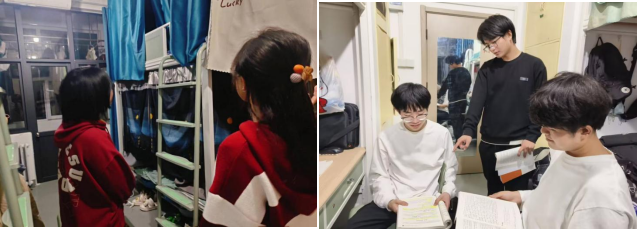 23级戏文九班团支部突击检查各宿舍用电安全情况,并检查各宿舍内是否制订了宿舍安全排班表,对值日学生的工作内容进行讨论。讨论内容对共同监督拒绝使用违章电器,拒绝充电器不拔等危害宿舍安全的行为进行约束。讨论的节后,团支书扈航航又对如何预防火灾、用电安全、防盗防骗等核心宿舍安全问题进行宣讲。