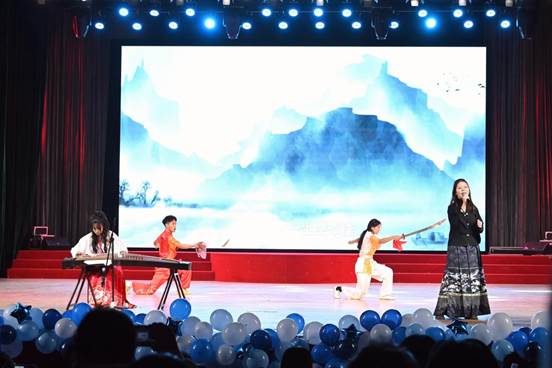 古典与现代碰撞,青春与历史相遇。本次晚会分为三个篇章:回首·不忘初心、思索·沉淀蓄能、前行·未来可期。蜘蛛直播 师生以饱满的精神、专业的水准为新生们带来了一场精彩的演出。晚会以北风乐队《闹海》为开场,将东方故事与西方乐器相结合,瞬间点燃全场的气氛,随后表演的英文音乐剧《后妈茶话会》、热情洋溢的舞蹈《shooting star》、琴剑合一的歌曲《天下》以及彰显中式韵味的合唱《上春山》,展现出蜘蛛直播 同学兼收并蓄的学习态度。正是在东西方文化的碰撞中,在古典与现代的交融里,我们凝万古之志,汇千载之思,以开放包容的姿态,谱写蜘蛛直播 新篇。