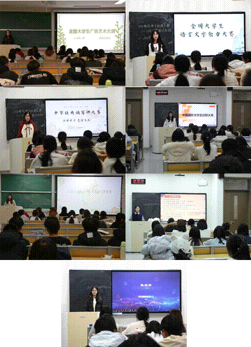本次宣讲由实践创新部的七名副部长轮流讲解,讲解内容主要包含以下三个方面:一是介绍科创竞赛的组织构成和参赛意义,理解科创竞赛中学科竞赛和双创竞赛的划分,介绍往届比赛优秀学长学姐,发挥榜样引导的作用,激发学生科创竞赛热情。二是引导学生正确认识科创竞赛与社会实践的关系,引导学生理解社会实践、重视社会实践、筹划社会实践。三是对七大赛事活动进行细致讲解和备赛经验分享,对中国国际大学生创新大赛、“挑战杯”全国大学生课外学术科技作品竞赛和创业计划大赛、大学生创新创业训练计划项目、全国大学生广告艺术大赛、全国大学生语言文字能力大赛、中华经典诵写讲大赛六大竞赛以及寒暑假社会实践这七大赛事活动,从参赛意义、赛事时间轴、赛道选择、参赛内容、备赛建议、优秀作品分享等方面为同学们提供参赛思路,进一步激发学生的参赛热情。