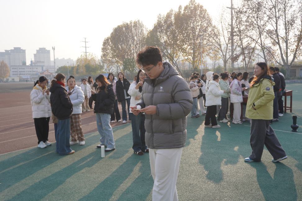 寒风凛冽燃斗志,诗韵悠扬展风华。活动现场气氛热烈,“乒乓载字跑”项目将运动与文学素养巧妙结合,参赛选手在夹球接力中默契配合,在诗词挑战中尽展文采;“书名猜猜看”环节充分展现了选手们的协作能力,文学经典在一述一答中焕发出全新生机;“诗韵投壶”环节既考验选手的投壶技术,又考验其诗词积淀。三大特色项目轮番上演,青春身影在赛场跃动,琅琅诗声在风中回荡,交织成校园里一道独特而靓丽的风景线。