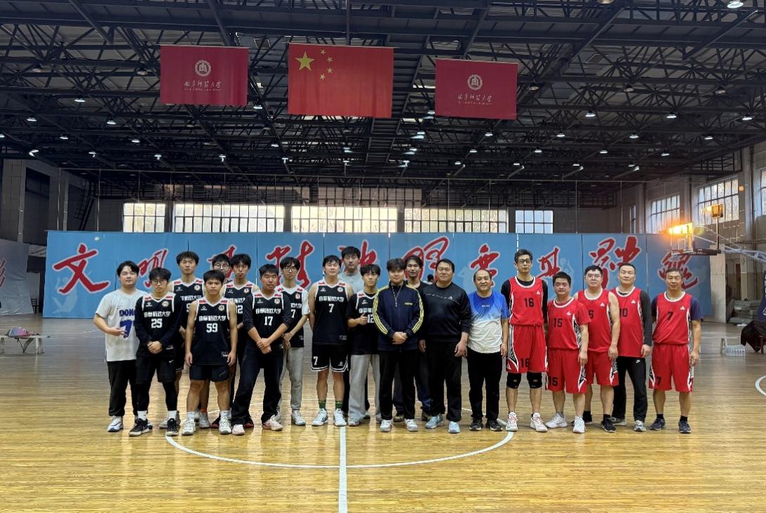 青春活力与沉稳经验在赛场激情碰撞,比赛伊始双方便迅速进入状态展开激烈攻防。学生队凭借充沛体能与默契传接频频快攻、大放异彩,教师队则以娴熟技术和稳健战术沉着应对、紧咬比分,最终教师队以47比43的比分鏖战获胜。这场篮球赛超越了单纯竞技较量,既展现“薪火相传竞风采,亦师亦友共拼搏”的氛围,更洋溢着深厚师生情谊。比赛间隙有学生为老师递水、老师为学生指点跑位,赛后学生们又围拢过来与老师热烈讨论精彩攻防,这些日常互动让激烈赛场满是温情。