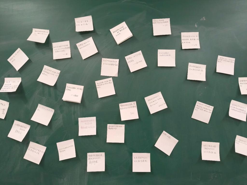 2025级2班团支部及光影影视协会、古风联盟社团组织同学们开展心得分享与专题讨论,系统梳理思想感悟,使文化思考在对话中沉淀升华;2024级7班团支部创意搭建文化语录展示墙,将优秀文化内涵与青春使命精神以直观生动的方式传递给同学们,让中华文脉在校园中绵延生长。