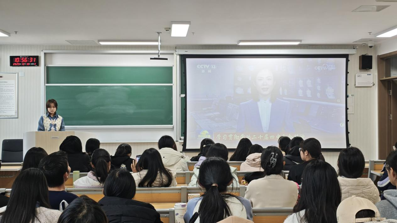 2024级9班、2025级2班团支部及红楼梦协会社团组织成员观看党的二十届四中全会精神相关学习视频,并结合要点解读,引导同学们准确把握国家发展方向,深刻认识自身时代使命。