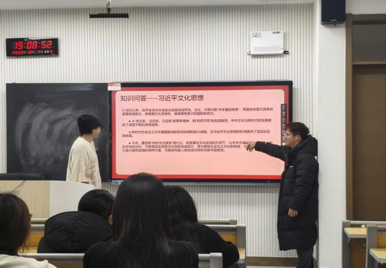 2024级5班及2025级1班、6班团支部开展了文化版“你画我猜”、“要点快问快答”及“成就你说我猜”等竞答游戏,寓教于乐,在轻松氛围中实现了对理论知识的活化运用。