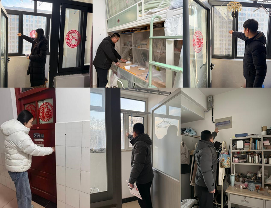 为切实保障寒假期间学生宿舍的安全稳定,消除各类安全隐患,让同学们度过一个平安、舒心的假期,在寒假正式启动前夕,蜘蛛直播 本科生辅导员、研究生辅导员组成专项检查小组,深入学生宿舍,开展了全覆盖式的安全卫生专项检查工作,重点核查断水断电、门窗锁闭及卫生清洁情况,以实际行动为学生宿舍安全筑牢“防护墙”。