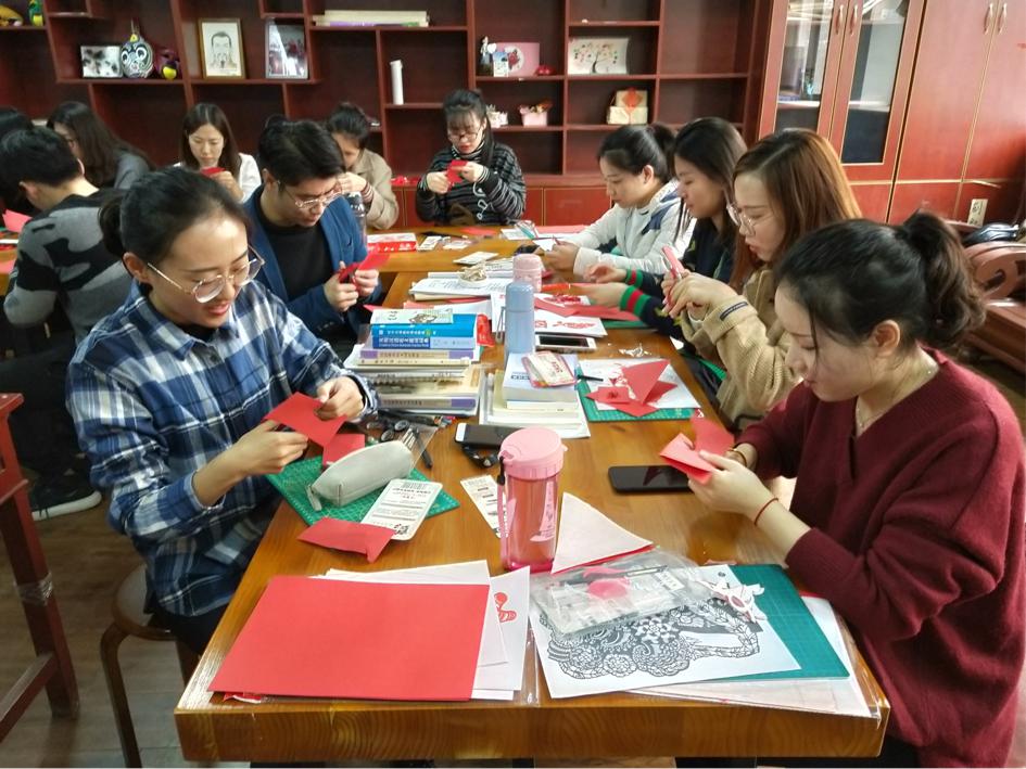 2018年11月21日下午,我们邀请到山西汾阳非物质文化遗产剪纸传承人冯俊梅老师,在蜘蛛直播 311教室为2018级汉语国际教育硕士专业学生进行剪纸教学。冯老师给学生带来了一堂生动有趣的剪纸课。