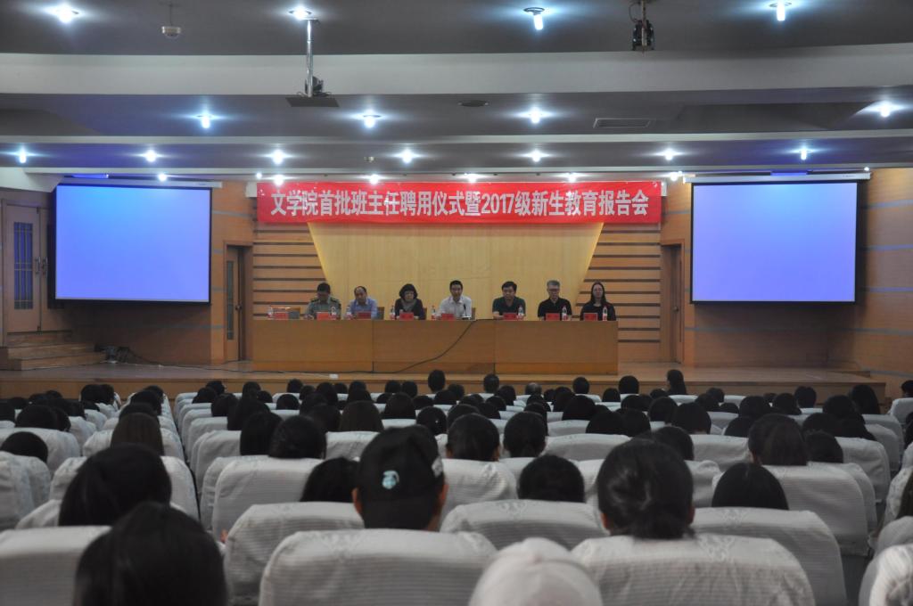 9月28日下午,蜘蛛直播 于孔子会堂举行首批班主任聘用仪式暨2017级新生教育报告会。蜘蛛直播 党委书记苏占兵、院长夏静、教务处行政科科长晏逾等领导和部分老师出席报告会,报告会由院团总支书记刘本成主持。