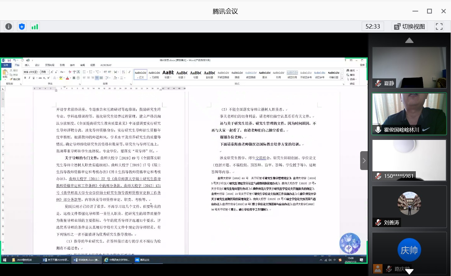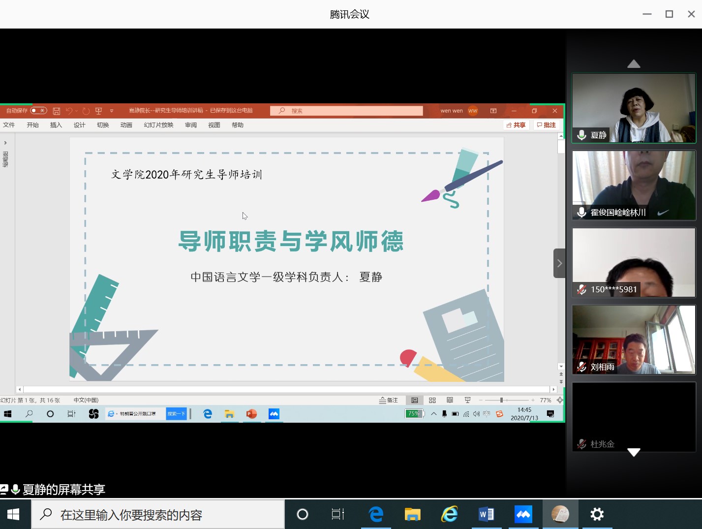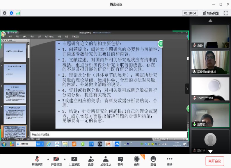 为进一步提高研究生导师指导能力、保证研究生培养质量,根据学校决定和要求,7月13日下午,蜘蛛直播 举办了2020年研究生导师线上培训会,全体研究生导师参加了此次会议。会议由院长助理霍俊国副教授主持。