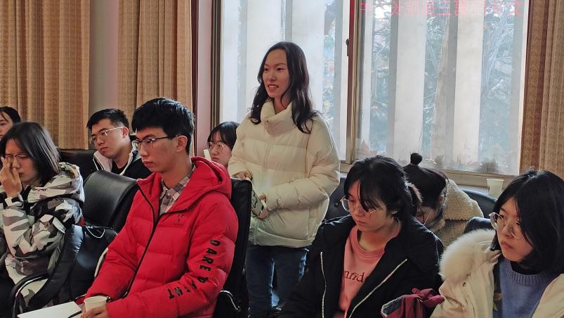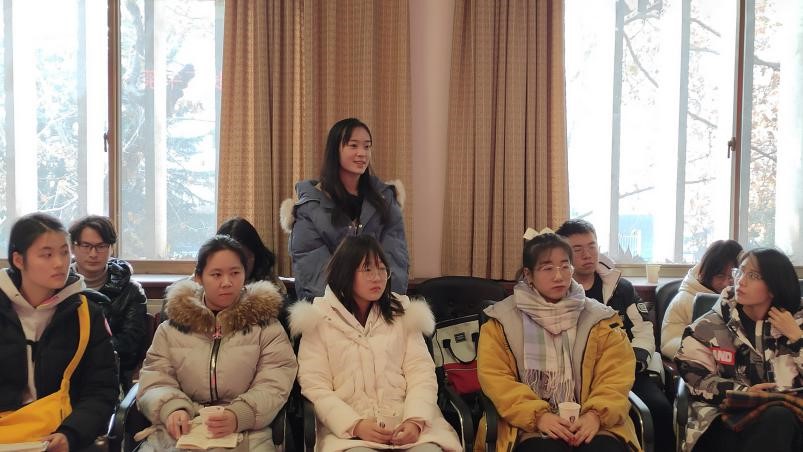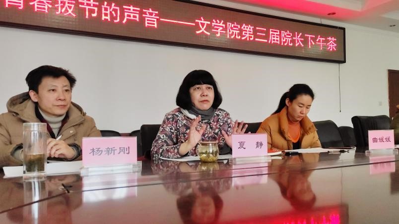在轻松愉悦的氛围下,同学们诉说了近一段时间以来自己在校园生活上、学习上遇到的种种困惑与不解,其中涉及的问题主要集中在课堂授课、选课、自习、考研、就业等方面。与会的老师们认真仔细的听取了同学们的意见和建议,并耐心为同学们解答了心中的疑惑。夏静院长督促同学们在平日里要给自己适当压力,多练习写作,多诵读经典。另外,她提醒同学们在学习的过程中,不要把目光只局限在课堂上老师讲授的内容上,只局限在教材上,要学会顺藤摸瓜,找到学习的“原点”。杨新刚老师希望同学们摆脱高中学习的思维模式,进入大学以后,要有自学的能力,要做好学习规划。曲媛媛老师向同学们传达了学校/蜘蛛直播 关于评奖评优、保研、就业等方面的最新政策,给同学们吃了一颗定心丸。孔真老师现场传授同学们如何提升写作水平的技巧方法,比如坚持写东西,比如多阅读一些能够引起共情共鸣的优秀作品等等。刘嵘老师指出,虽然一些经典著作比较晦涩难懂,但一定要尝试走近经典,随着人生阅历的增长,知识储备的增加,对这些作品的理解和领悟也会加深。冯萌萌老师现场纠正了同学们在修读学分和选课上存在的一些误区,使同学们避免了很多不必要的麻烦。