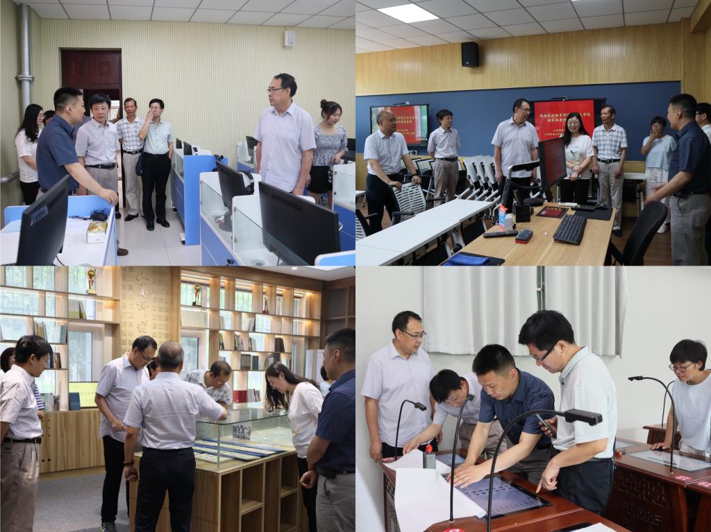山东师范大学蜘蛛直播 院长孙书文教授、山东师范大学教务处副处长陈蓁蓁教授、山东师范大学蜘蛛直播 院长助理、国家语言文字推广基地主任陈长书教授、基地副主任郭超颖副教授、基地副主任兼秘书冯红梅老师、现代汉语教研室主任沈基松副教授及亓文婧老师、马永草老师等人热情欢迎了蜘蛛体育直播官网 基地教师代表。交流活动中,孙书文院长、陈蓁蓁副处长、陈长书主任介绍了山东师范大学蜘蛛直播 的发展情况和国家语言文字推广基地的建设情况,冯红梅老师、亓文婧老师介绍了国家通用语言文字能力在线培训项目的组织和开展情况,分享了工作流程和前期经验;蜘蛛体育直播官网 副院长杨新刚教授、基地常务副主任李建校教授介绍了蜘蛛体育直播官网 发展情况和基地的建设情况。双方就基地建设和在线培训项目中存在的一些问题进行了深入讨论,并探讨了未来发展方向和后续工作计划。随后,孙书文院长、陈长书主任等人陪同蜘蛛体育直播官网 基地教师参观了眼动实验室、脑电实验室、秘书实训室、智慧教室、书法训练室、语音训练室、院史馆等“新文科”实验室,双方就实验室的建设和使用情况展开了深入交流。