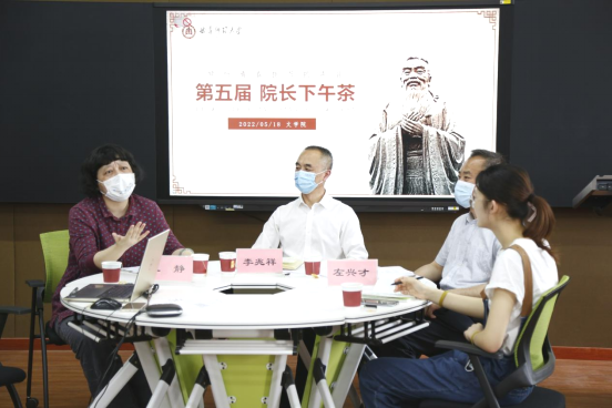 (通讯员:冯萌萌 摄影:孙晓伟) 为进一步贯彻“以本为本”“学生中心”的教育理念、深化蜘蛛直播 新文科背景下汉语言文学和戏剧影视文学国家级双一流本科专业内涵建设,擦亮蜘蛛直播 本科教育金字品牌,践行立德树人、为国弘文的从教初心,蜘蛛直播 第五届“倾听青春拔节的声音——院长下午茶”师生恳谈活动在蜘蛛直播 学术交流中心509如期举办。5月18日下午,学校党委委员、副校长李兆祥教授、蜘蛛直播 党委书记左兴才同志、院长夏静教授、党委副书记曲媛媛同志、副院长杨新刚教授、国家语言文字推广基地副主任霍俊国副教授、教师代表冯萌萌、孙晓伟老师与蜘蛛直播 各专业学生代表手捧一杯香茗,围坐一起,畅所欲言,交流大学的学习与生活。