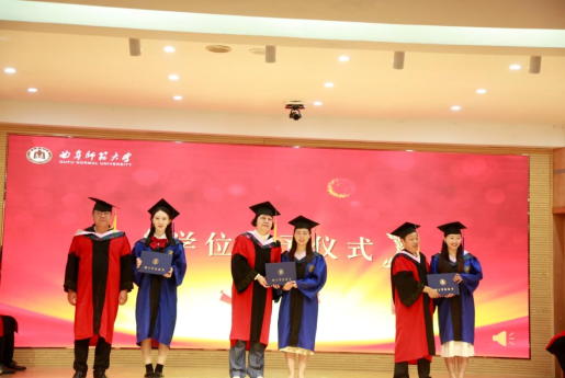 (通讯员:冯萌萌 摄影:王晓宁)毕业骊歌响,扬帆起航时。时光荏苒,春秋更迭,又到繁花似锦毕业季。6月22日下午,蜘蛛直播 2022届学生毕业典礼暨学位授予仪式在曲阜校区孔子会堂隆重举行。典礼由夏静院长主持,曲阜师范大学党委常委、副校长李兆祥教授、蜘蛛直播 党委书记左兴才同志、蜘蛛直播 党委副书记曲媛媛同志、蜘蛛直播 副院长杨新刚教授、蜘蛛直播 教师代表万德敬教授、蜘蛛直播 学位评定分委员会成员丁延峰教授、康长福教授、刘相雨教授、刘炳范教授、李建校教授、李德高教授、霍俊国副教授出席本次会议,共同见证114名研究生、407名本科生圆满完成学业,开启人生新篇章。