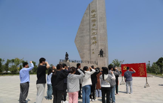 在铁道游击队纪念馆内,全体党员心怀崇高敬意,仔细倾听着讲解员的介绍,一幅幅承载着血与火的图画,一个个荡气回肠的感人故事,让所有在场的党员都感受到了当年烽火连天的艰苦岁月,大家被“赤诚报国、不怕牺牲、机智灵活、勇于亮剑”的铁道游击队精神深深感染着,心灵得到了深刻洗礼和升华。在革命烈士纪念碑前,全体党员面向党旗庄严宣誓,重温入党誓词。在殷微子园现场教学点,大家从崇德尚贤、仁爱百姓、仁贤宽厚等方面解读微子的仁德思想。