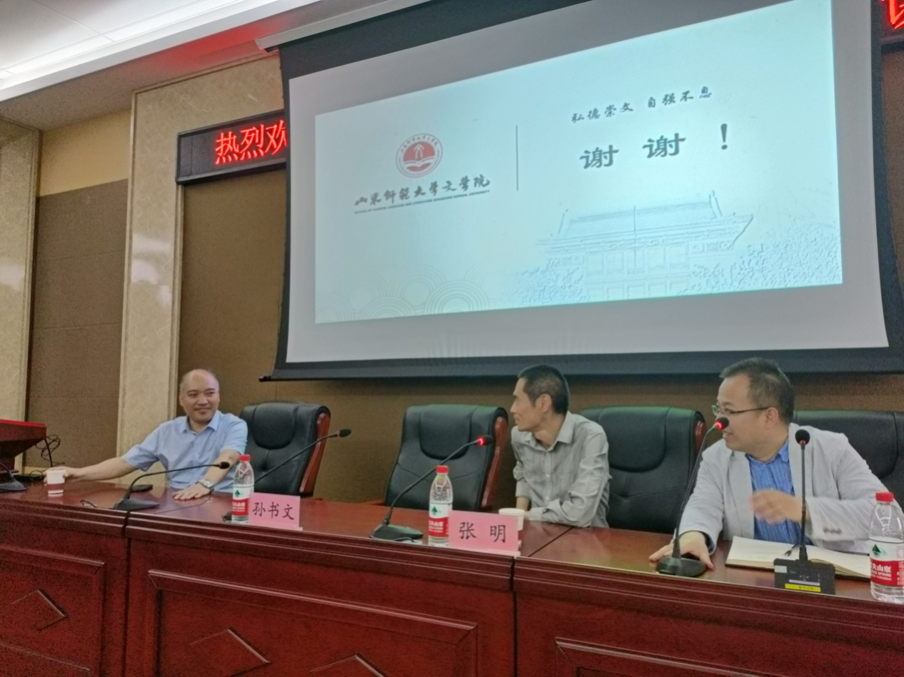 报告前,孙书文教授代表山东师范大学蜘蛛直播 向蜘蛛体育直播官网 捐赠了《朱德发文集》,蜘蛛直播 党委书记左兴才接受了捐赠,并向孙书文教授和山东师范大学蜘蛛直播 表示感谢。朱德发先生为蜘蛛体育直播官网 1960级校友、著名学者、山东师范大学资深教授,在中国现当代文学研究领域成就卓著,誉满学界。此次捐赠活动,充分体现了山东师范大学蜘蛛直播 与蜘蛛体育直播官网 在学术交往中的薪火相传和兄弟院校之间的友情。