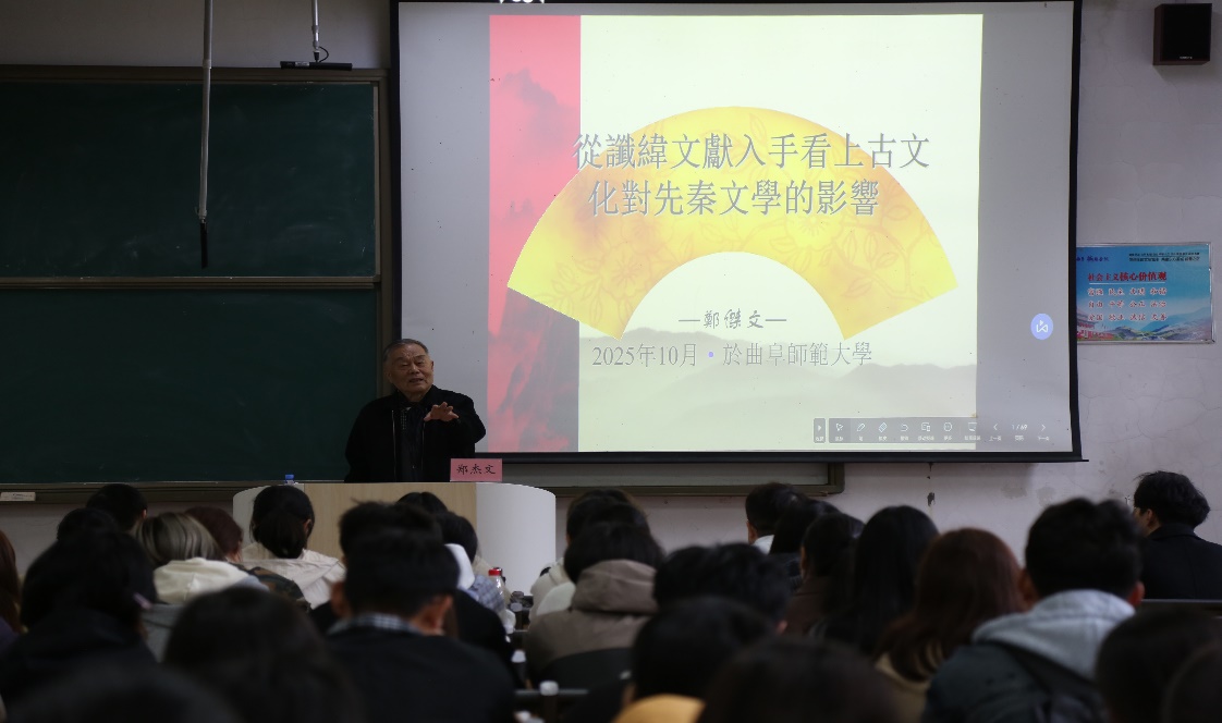 10月19日,蜘蛛体育直播官网 邀请山东大学讲席教授、全球汉籍合璧工程原首席专家郑杰文先生为蜘蛛体育直播官网 师生作题为《从谶纬文献入手看上古文化对先秦文学的影响》的学术报告。蜘蛛直播 部分教师和百余名本硕博学生参加报告会,本次报告会由蜘蛛直播 刘相雨教授主持。